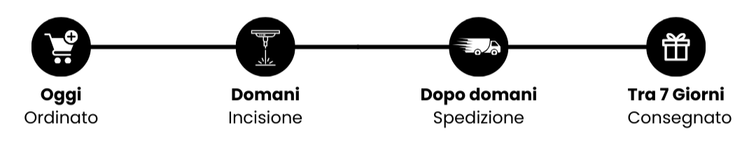 Una volta ricevuto l'ordine inizieremo subito a lavorarci: nel giro di 1-2 giorni verrà realizzato e dopo altri 5-6 giorni sarà a casa tua tra le tue mani!