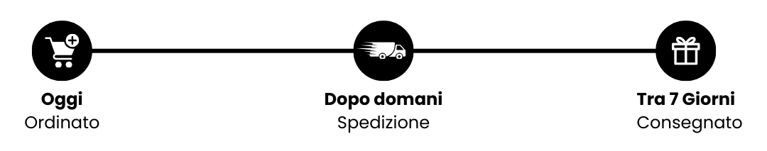 Una volta ricevuto l'ordine inizieremo subito a lavorarci: nel giro di 1-2 giorni verrà preparato il pacco e dopo altri 5-6 giorni sarà a casa tua tra le tue mani!